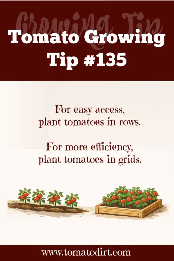 Yes—and this is often the best solution. Many gardeners use rows for large indeterminate tomatoes and square-foot sections for smaller plants. This hybrid approach gives you efficiency and airflow. You’ll get higher yields from both sets of plants. And your tomato crop will be much easier to maintain!